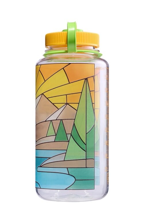 Bình Nước Nalgene Wide Mouth Stained Glass Print Bottles 32oz/1000ml là bộ sưu tập phiên bản giới hạn. Nó được so sánh như là cánh cửa sổ đầy màu sắc nhìn ra thế giới thiên nhiên tuyệt đẹp. Ba thiết kế phong cảnh tuyệt đẹp được in trên bình nước làm từ vật liệu tái chế 50% rác thải nhựa (sử dụng phương pháp cân bằng khối lượng theo chứng nhận ISCC). Không chứa BPA/BPS. Sản xuất tại Mỹ. Chống rò rỉ và an toàn khi rửa bằng máy rửa chén.
