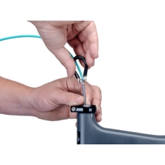 - Di2®-specific adapter – Specially-designed connector clips into the end of Shimano® E-tube® Di2® shift wire, and is perfectly sized to fit into frame holes as small as 6 mm