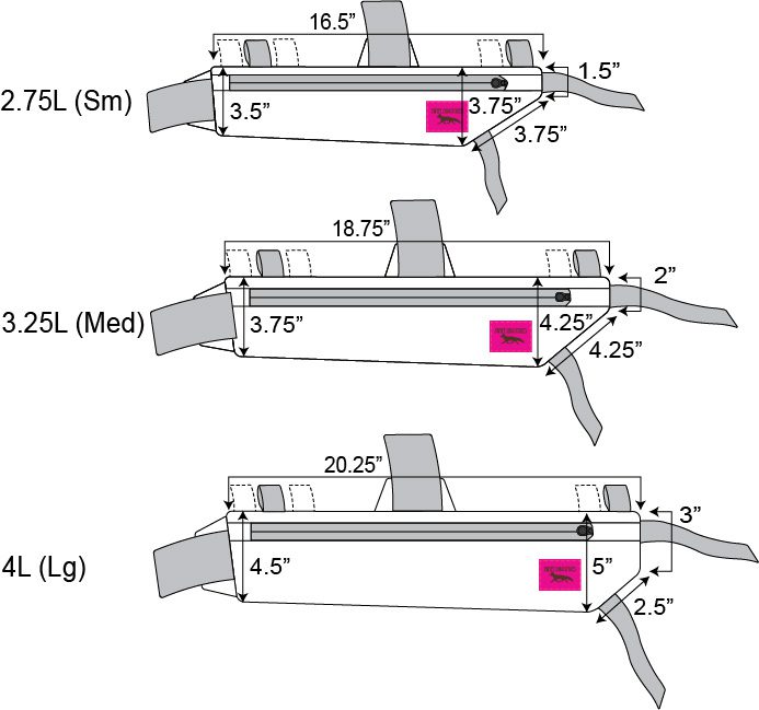 - Dimensions (L x W x H): see size chart